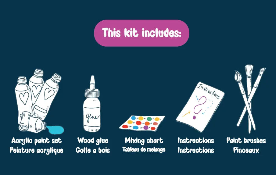 – 8 acrylic paints included (.35oz each colour)